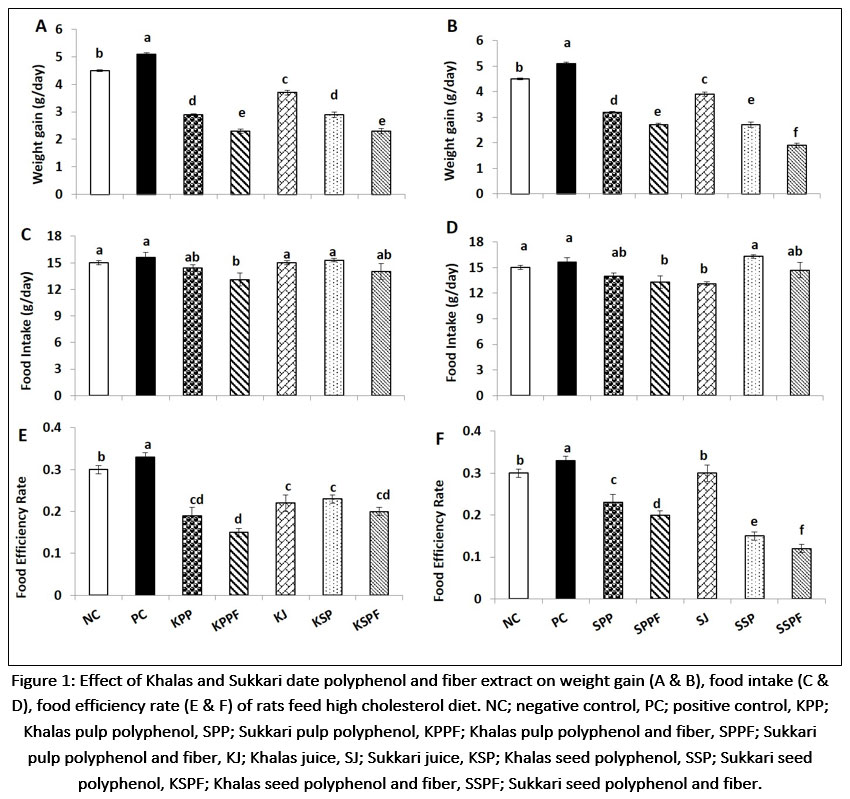 Effect of date polyphenol and fiber extract on weight gain and food intake of rat fed high cholesterol diet