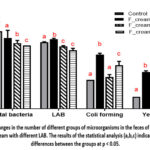 The sour cream samples were obtained as follows. For sour cream production, lactic acid bacteria (LAB) precultures were grown in sterile skim milk at 36°C for 16 h. The resulting precultures, with a volume of 5 ml, were added to the 100 ml of cream containing 15% fat. The mixture was then subjected to a fermentation process at a temperature of 32°C for a period of 14 hours. Following this, the sample underwent a stabilization step at a temperature of 4°C for a duration of 16 hours. Subsequent to this stabilization phase, each sample was stored at a temperature of 4°C and utilized for the purpose of animal feeding over a 21-day period. A fresh batch of fermented cream was prepared every 5 days to ensure freshness.