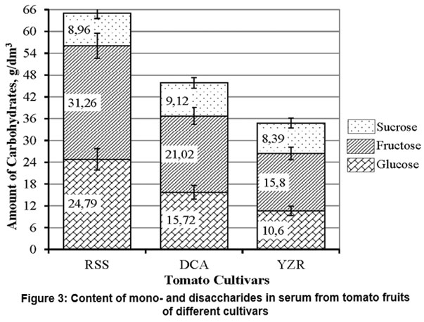 Figure 3: Content of mono- and disaccharides in serum from tomato fruits of different сultivars |