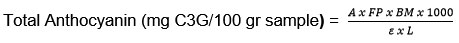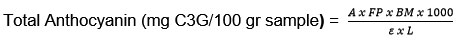 The total anthocyanin in the 7.5% Parijoto extract was calculated using the formula: