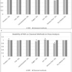 In the present study, reproducibility was assessed on four burger types (ten units per type, each analyzed in triplicate) and thirteen pizza types (each analyzed in triplicate), using FT-NIR spectroscopy. This experimental design generated a robust dataset for evaluating variability both within and across samples. The exceptionally low variability observed in our NIR measurements, standard deviations generally below 0.2 % across triplicate scans, reflects strong repeatability, which is the agreement between successive measurements under identical conditions. This consistency aligns with broader NIR literature, where averaging multiple spectra is known to improve model stability and predictive precision.20,21 Such reliability reaffirms NIR’s suitability for routine screening workflows in fast-food quality control.