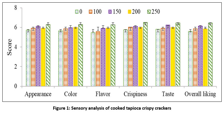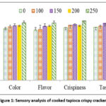 Tapioca crispy crackers were prepared in triplicate batches; mean values and standard deviations were calculated, and all results were expressed as mean ± SD. Analysis of variance (one-way ANOVA) was carried out using SPSS (IBM SPSS Statistics version 16). Duncan’s new multiple range test was used to find out the statistically significant differences in mean values between treatments at the level of P ≤ 0.05.