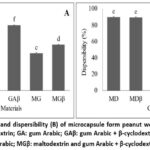 MD: maltodextrin; MDβ: maltodextrin + β-cyclodextrin; GA: gum Arabic; GAβ: gum Arabic + β-cyclodextrin; MG: maltodextrin and gum Arabic; MGβ: maltodextrin and gum Arabic + β-cyclodextrin