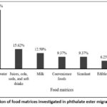 Milk and dairy products further illustrate this effect. Lin et al.,21 measured DEHP, DEP, and DIBP in commercial milk, showing that bound and free fractions of phthalates increased with longer storage. Dobaradaran et al.,41 recorded significant increases in DEHP and DnOP concentrations after just 4 days of refrigerated storage, confirming that even relatively short durations are sufficient to promote measurable release. Alshehri et al.,26 supported these findings by reporting detectable phthalates in milk under distribution conditions, which intensified after extended storage.
