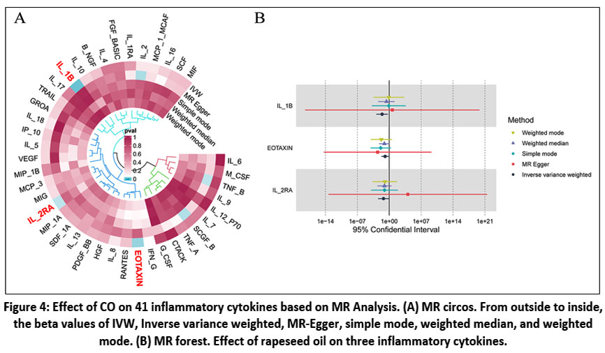 Figure 4: Effect of CO on 41 inflammatory cytokines based on MR Analysis. |