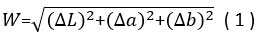 The pH measurement was performed following the method described by Haase et al.32 with some modifications. 0.5 grams of ground biscuits were suspended in 20 milliliters of distilled water, mixed for 3 minutes and rested for 1 hour. Subsequently, the pH of the supernatant was measured using a Hanna Instruments pH meter. The acidity was determined by titration with a 0.1N solution of NaOH and 1% phenolphthalein as indicator. The color parameters (CIE L* a* b*) of the biscuits were determined using a colorimeter (Konica Minolta, EE.UU.) L* defines lightness and values range from 0 (black) to 100 (white), while a* and b* denote green (-a) to red (+a) and blue (-b) to yellow (+b) respectively. The whiteness (W) was calculated according to the following equation 1.