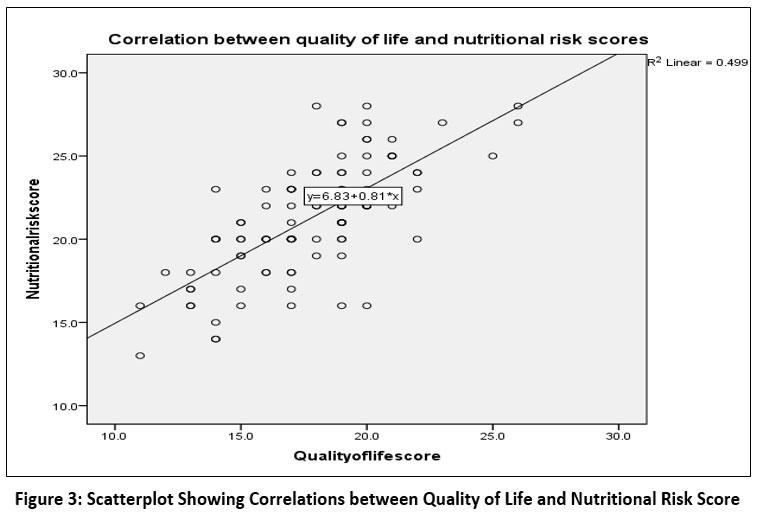Figure 3: Scatterplot Showing Correlations between Quality of Life and Nutritional Risk Score |
