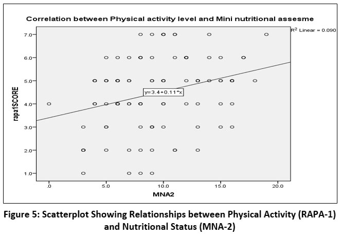 Figure 5: Scatterplot Showing Relationships between Physical Activity (RAPA-1) and Nutritional Status (MNA-2) |
